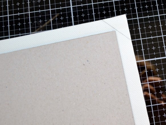 Tailler vos angles ; voici ma technique mais il y en a plein d’autres ! Je prends de la cartonnette de même taille (c’est important) et je viens la placer en butée contre l’angle (photo 1) et je trace un trait (photo 2). Attention à bien couper sur le trait.