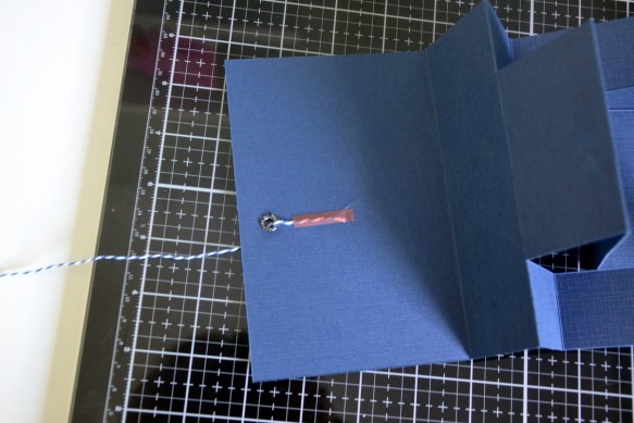 Poser les 2 gros oeillets face à face. J’ai ajouté le tampon « Week-end marin » de Chou Flowers, et une bande de la planche d’étiquette.