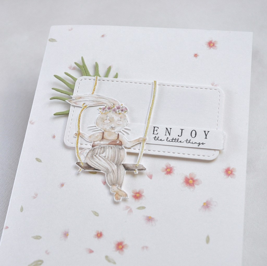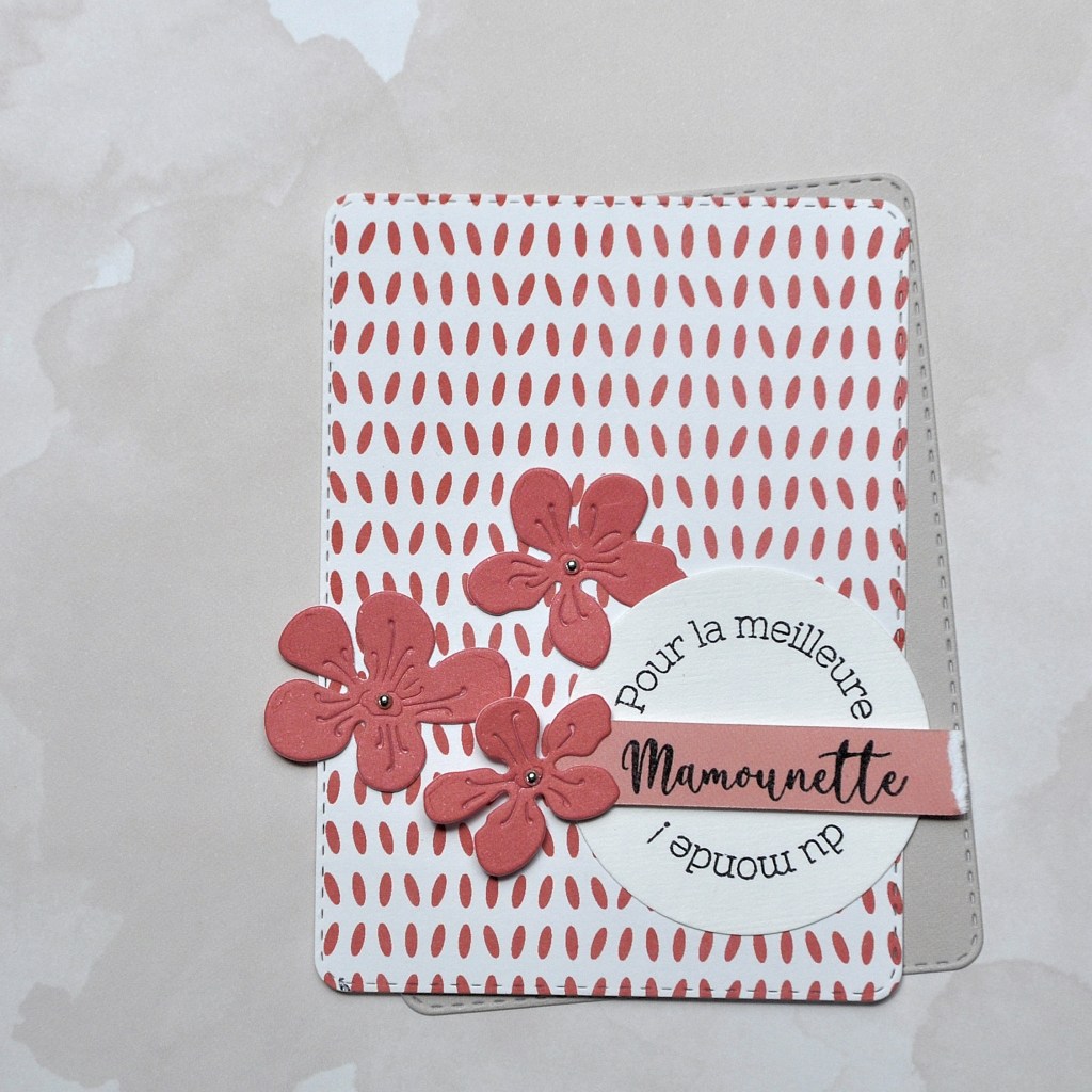 A présent, une grande carte de format A5, j’ai choisi de ne pas découper mon fond pour celle-ci :