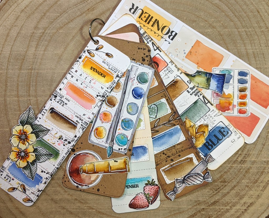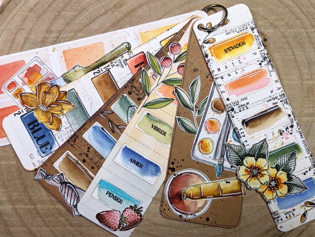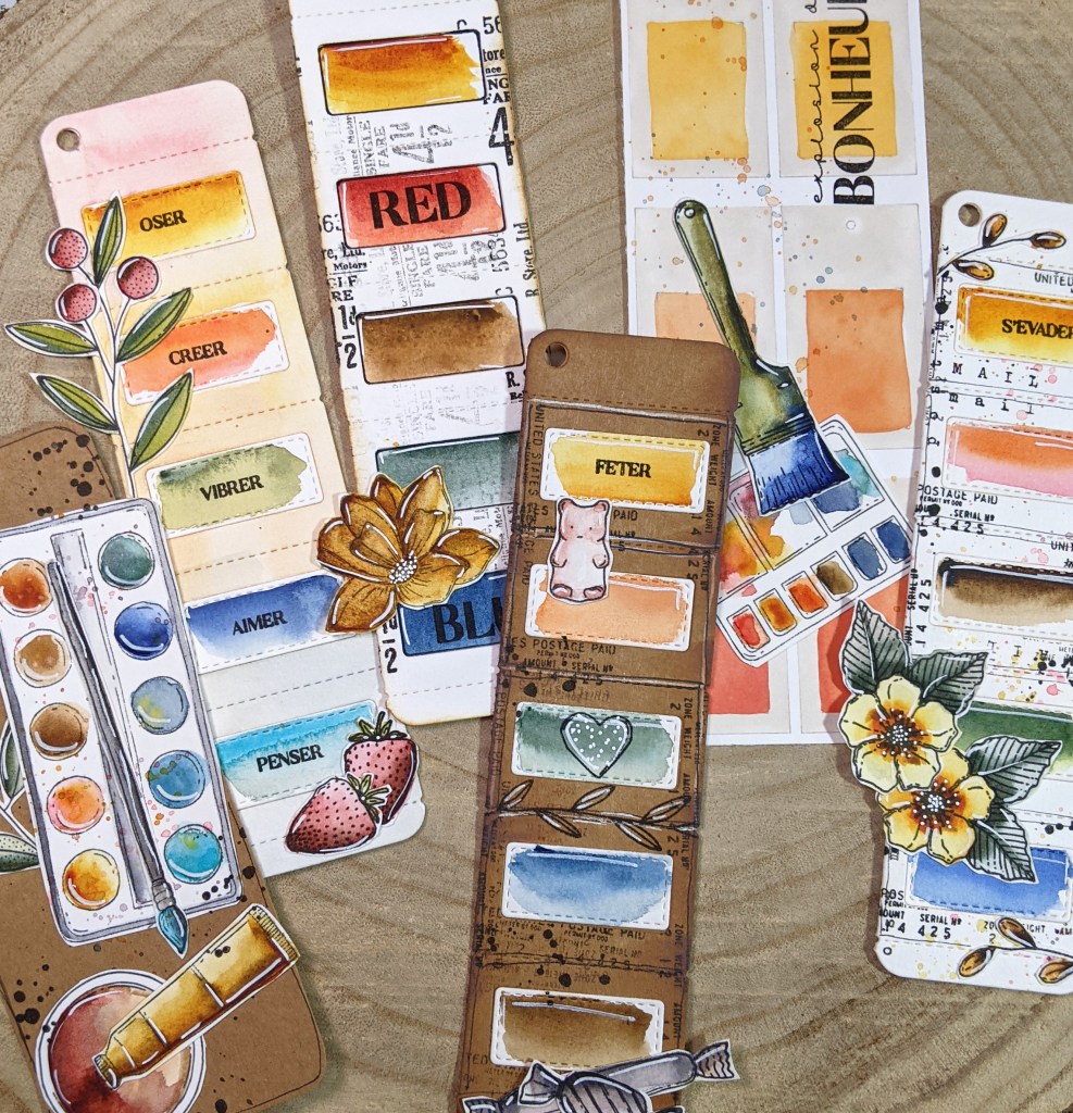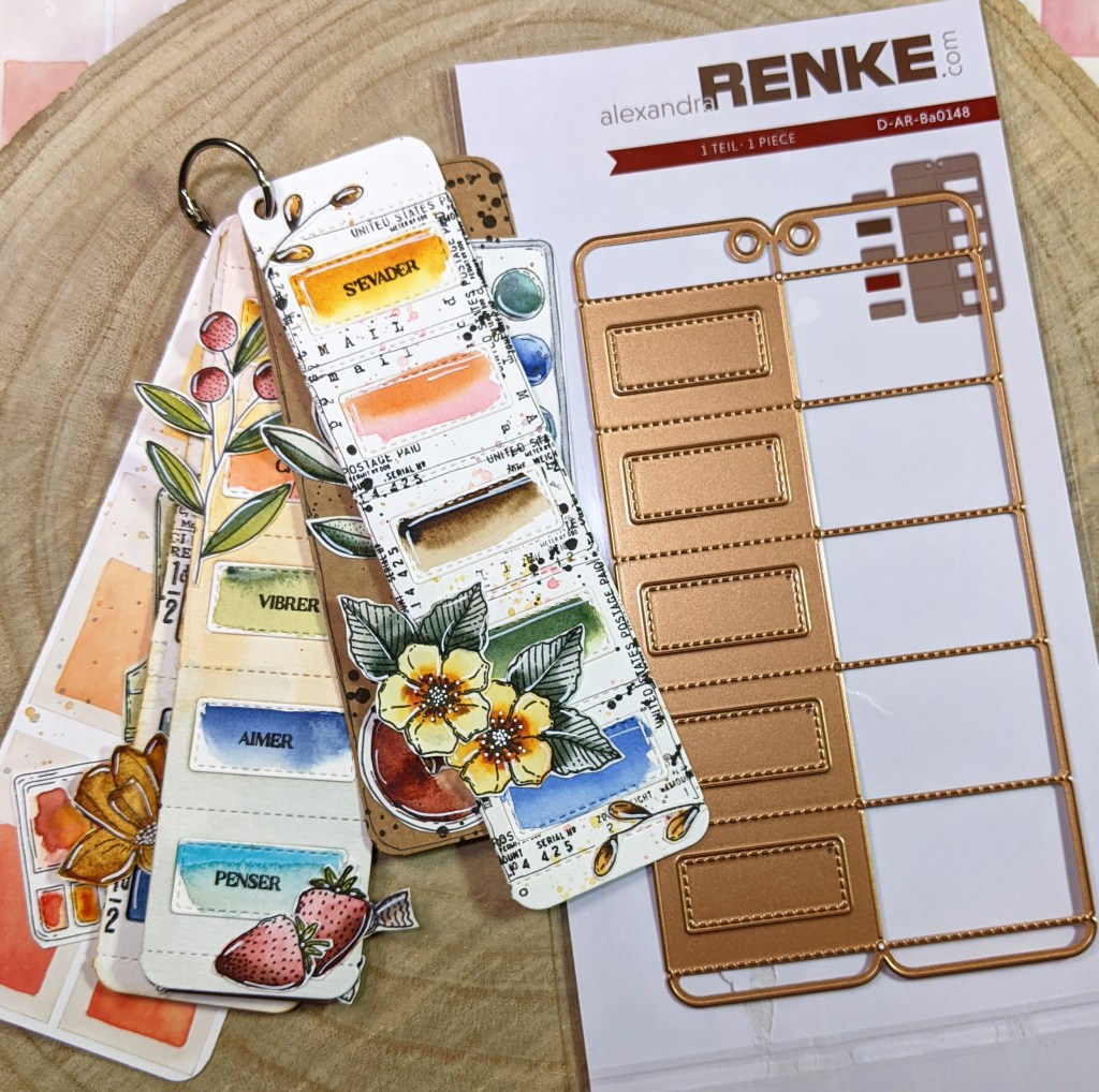 Cette découpe permet de multiples créations. Vous pouvez utiliser le die avec du papier aquarelle, avec du papier kraft et ajouter aussi les papiers Alexandra Renke de la même collection « nuancier de couleurs ».