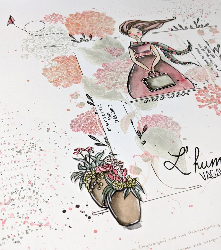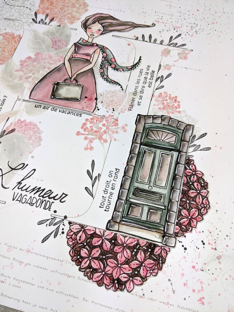 J’ai également ajouter quelques tampons Chou & Flowers de la nouvelle collection « journal chromatique ». Les deux collections se marient très bien ensemble !