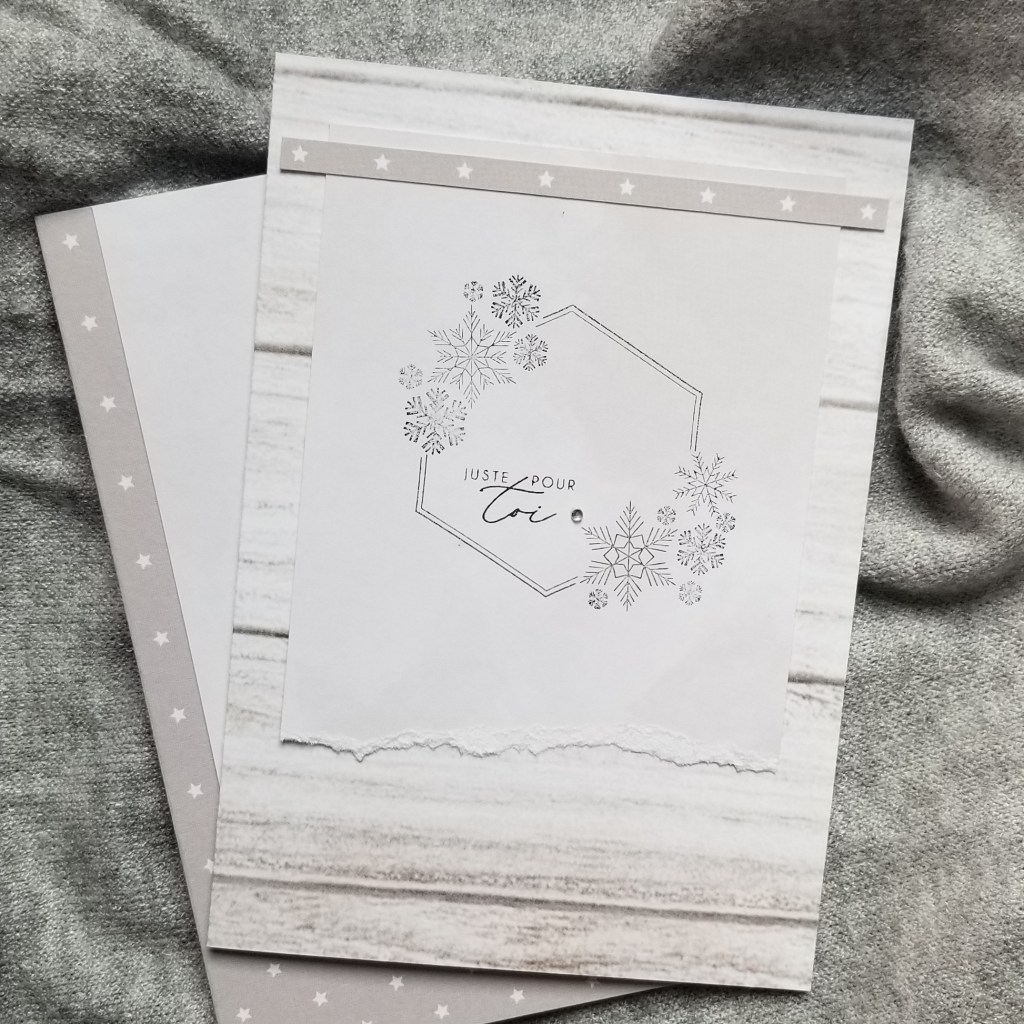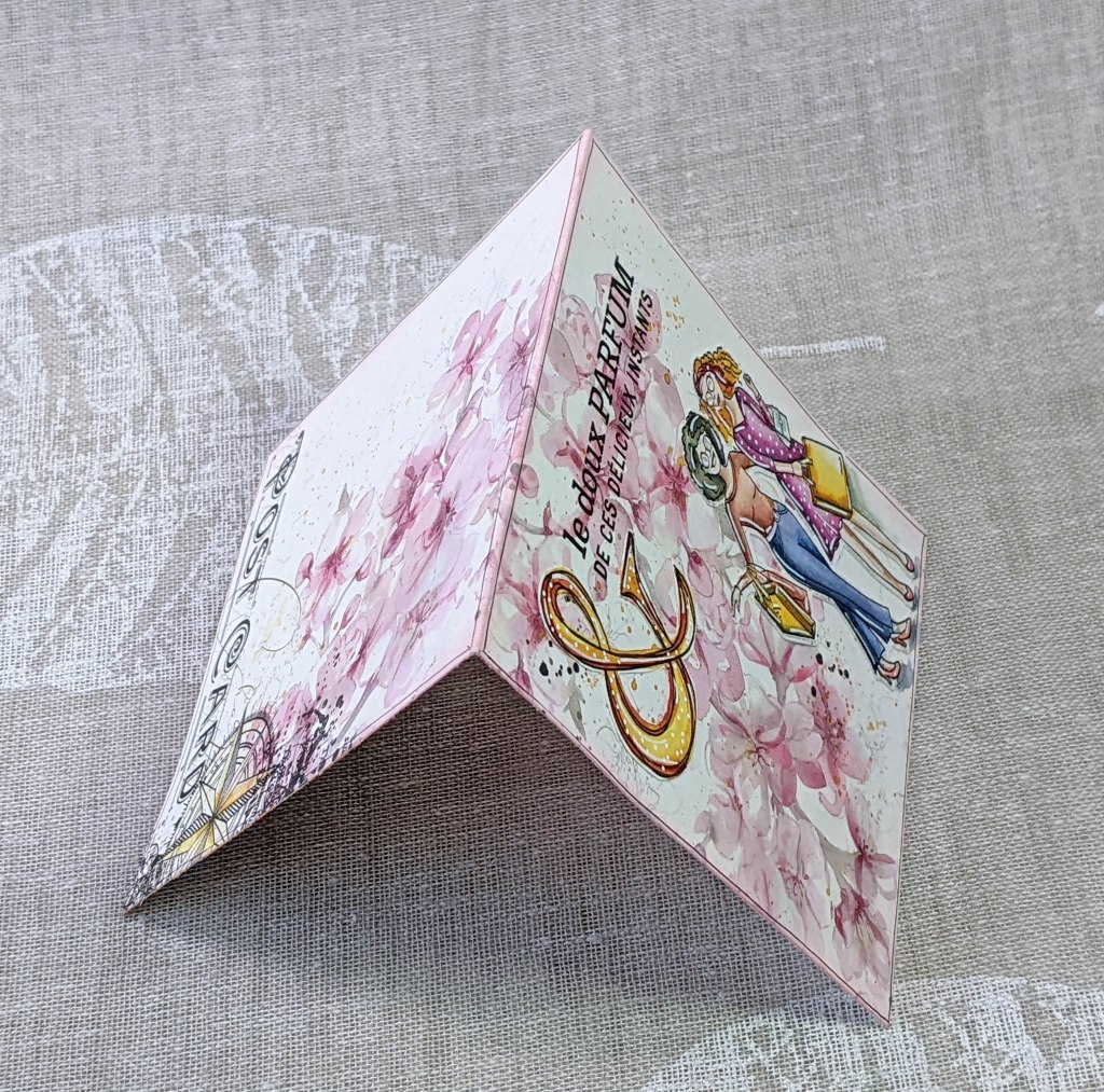 A présent, une grande carte de format A5, j’ai choisi de ne pas découper mon fond pour celle-ci :