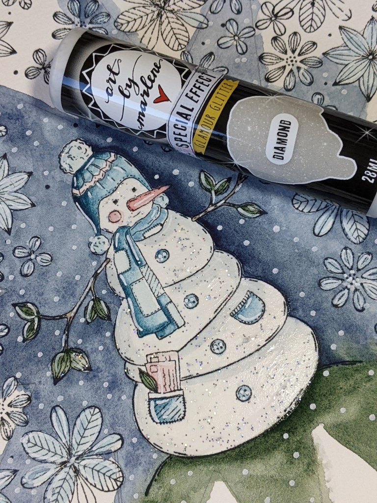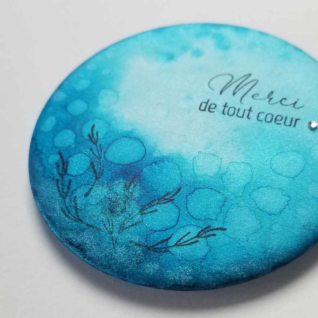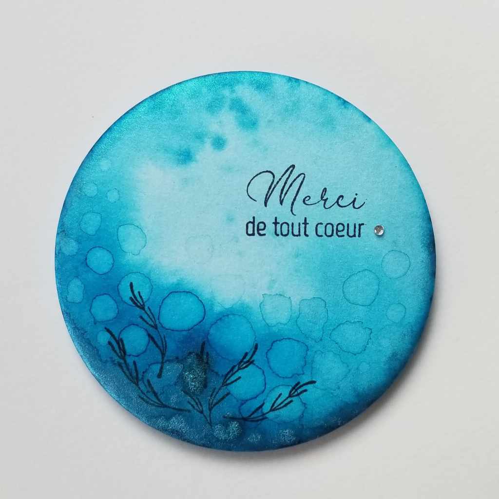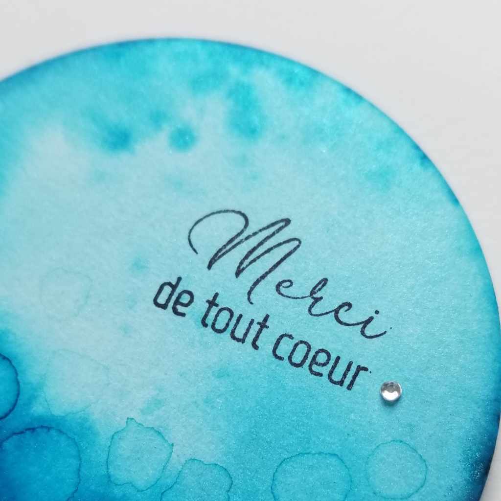 Pour finir, voici une dernière carte, réalisée dans des couleurs et un style encore un peu différent. avec un fond peint à l’acrylique que j’avais sur un coin de ma table…