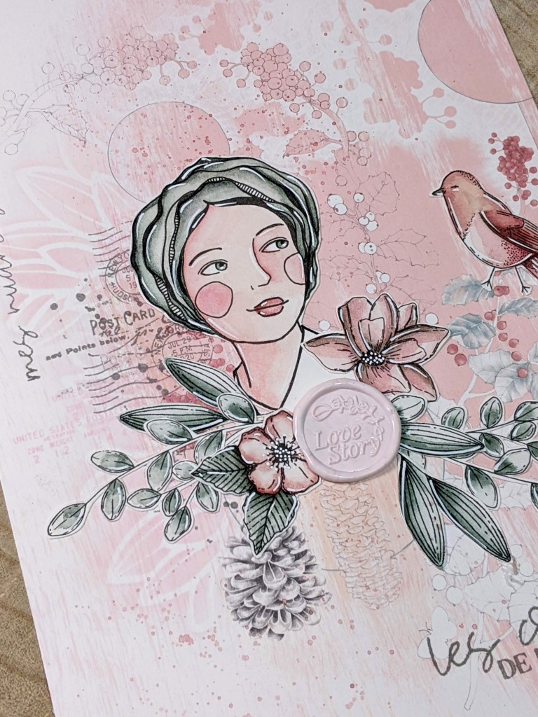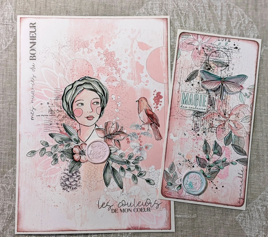 Je commence cette année en vous proposant une page au format A4 et une carte dans le même combo de couleur.