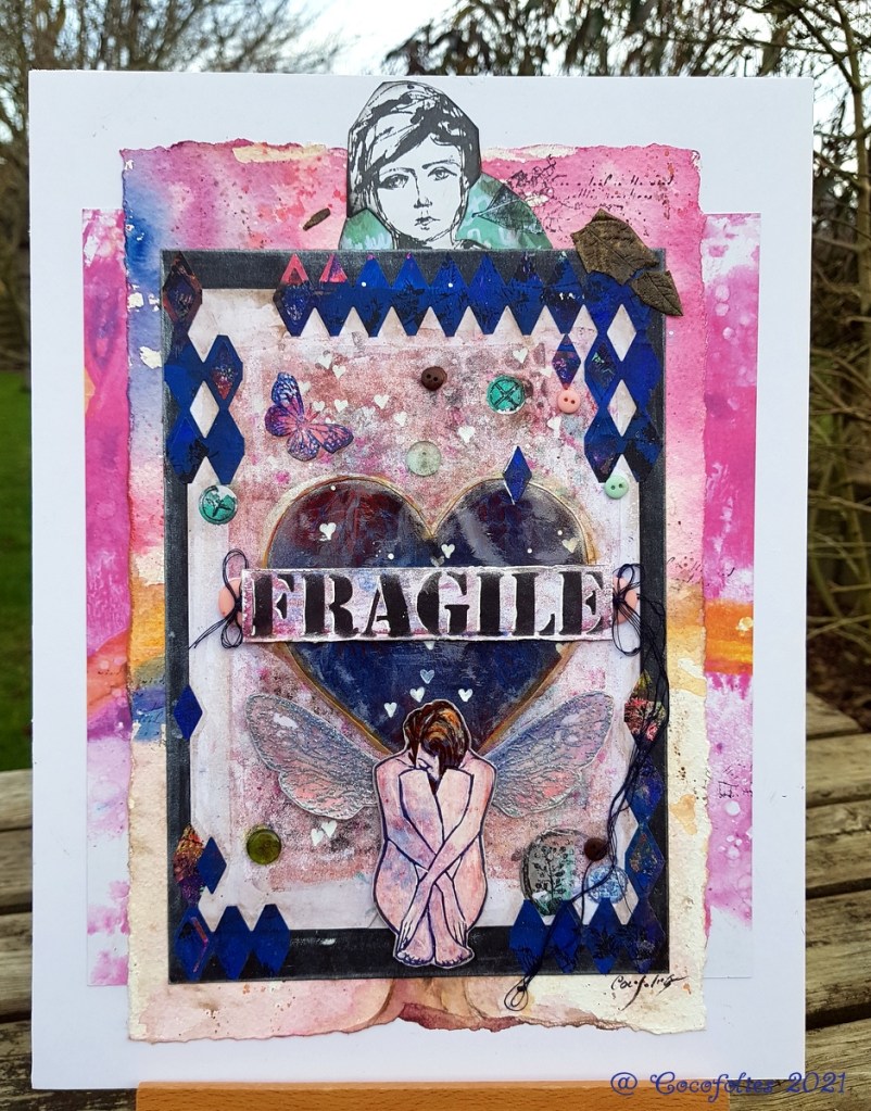 J’aime bien alterner les supports, alors j’avoue m’être bien amusée ici, à recycler de vieilles enveloppes … J’en ai toujours un plein stock ! C’est un support que j’aime bien, basique et sans valeur à la base, mais mais qui acquiert ses lettres de noblesse une fois décoré. Et il peut être envoyé par la poste, échangé, facilement intégré à un Art journal ou des Junk journaux si vous aimez… On peut aussi bien sûr les collectionner, c’est d’ailleurs ce que je fais ! 😉