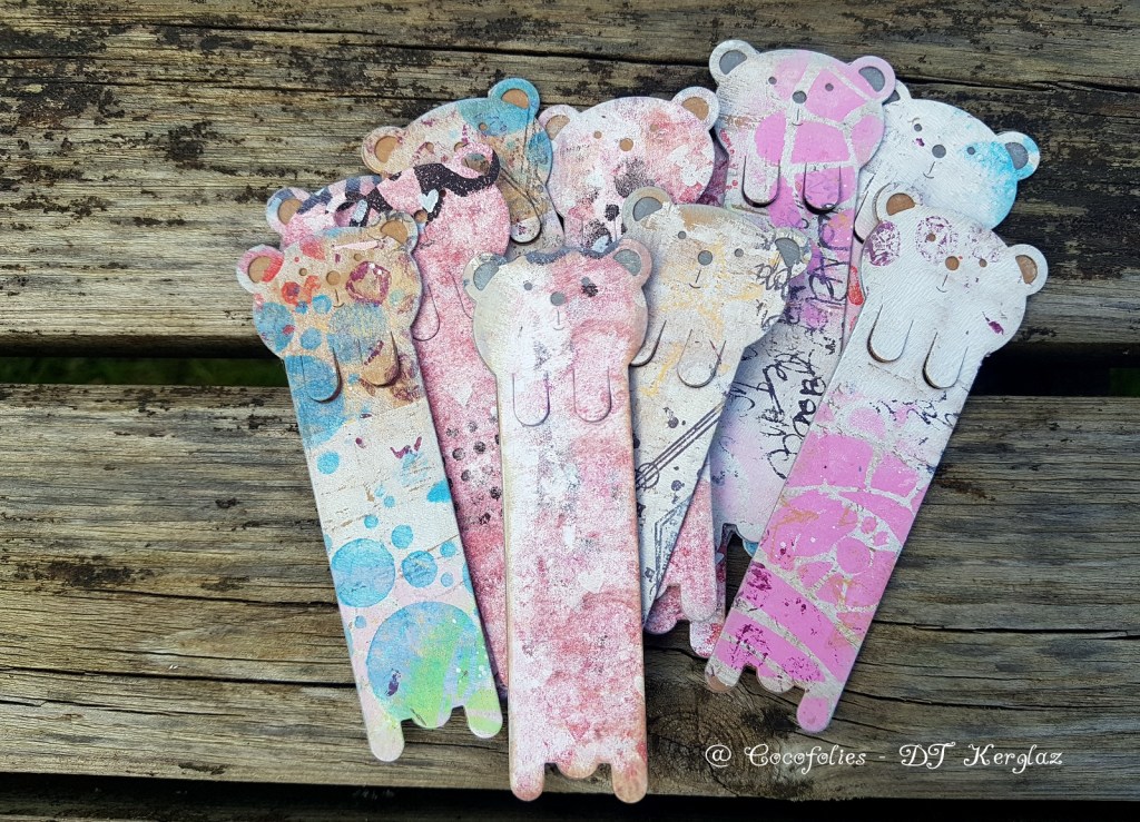 ça ne se voit pas trop malheureusement en photo, mais j’ai joué aussi avec des peintures Izink Diamond pailletées, en doré, turquoise et vert. j’en ai mis sur mes arrêtes de queue de sirène et sur mon étoile de mer, j’aime beaucoup le rendu !!