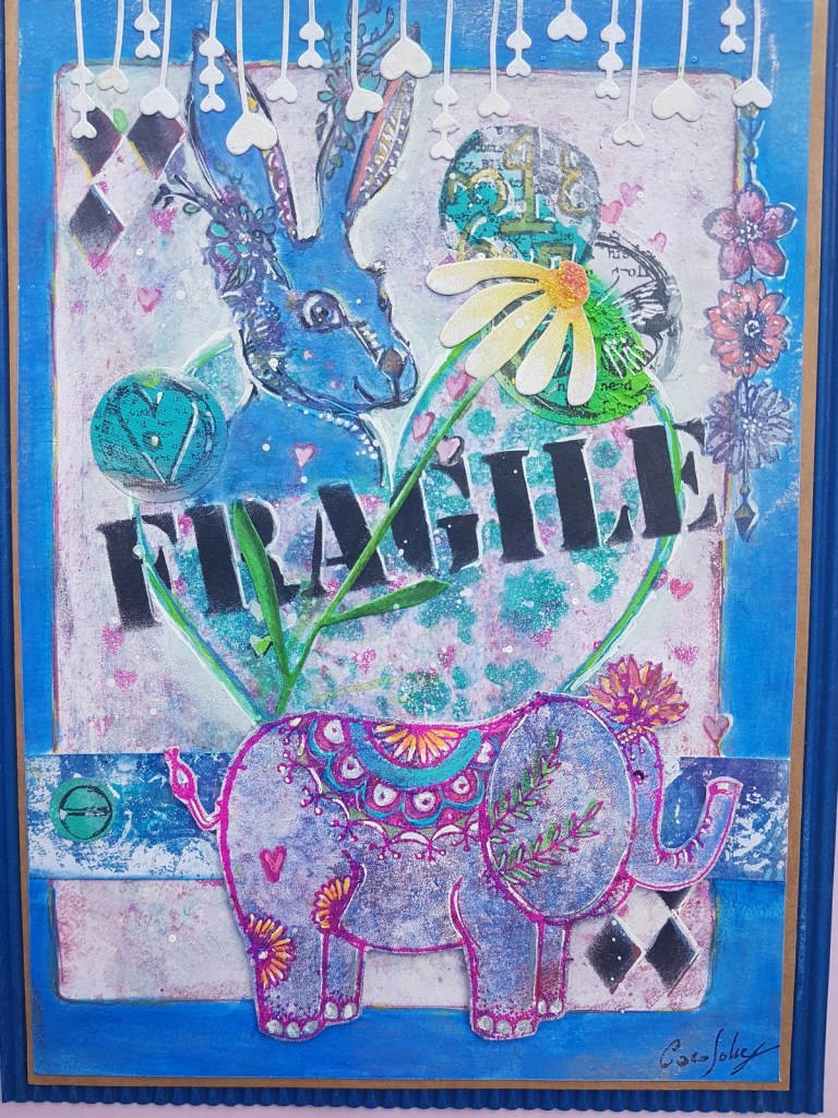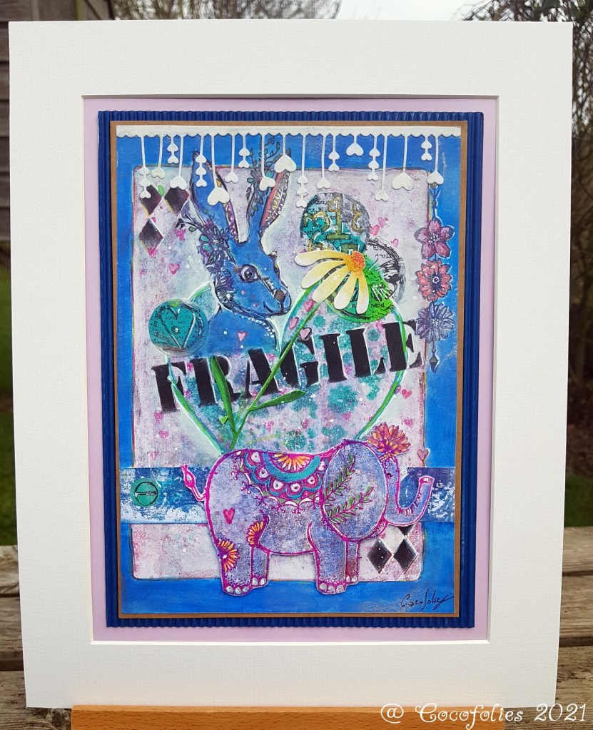 Mon projet en images, à différents stades. Vous pouvez voir ainsi le matériel que j’ai utilisé, la plupart de ce matériel et produits se trouve en boutique. Je vous en donne la liste complète en fin de post.
