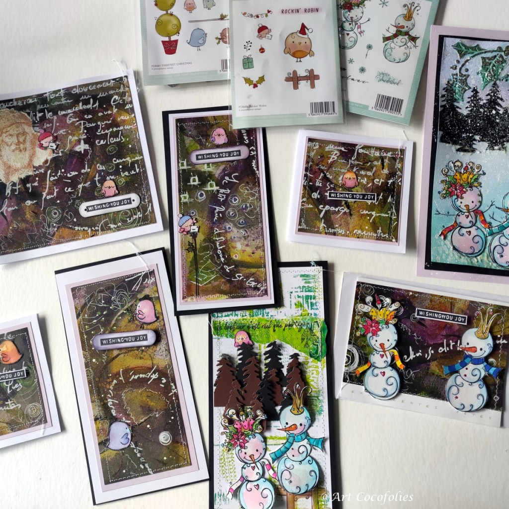 Voilà, j’espère que cet ensemble de cartes de vœux avec variations amusantes, fait en jouant avec une sélection de tampons de marque différentes, vous auront plu ! 😀