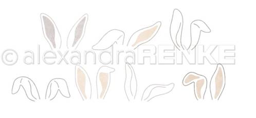 J’ai ensuite collé un carré blanc avec de la mousse 3D double face, en bas duquel j’ai positionné les petites oreilles de lapinou des dies ALEXANDRA RENKE mon gros coupe de coeur de cette collection de Pâques
