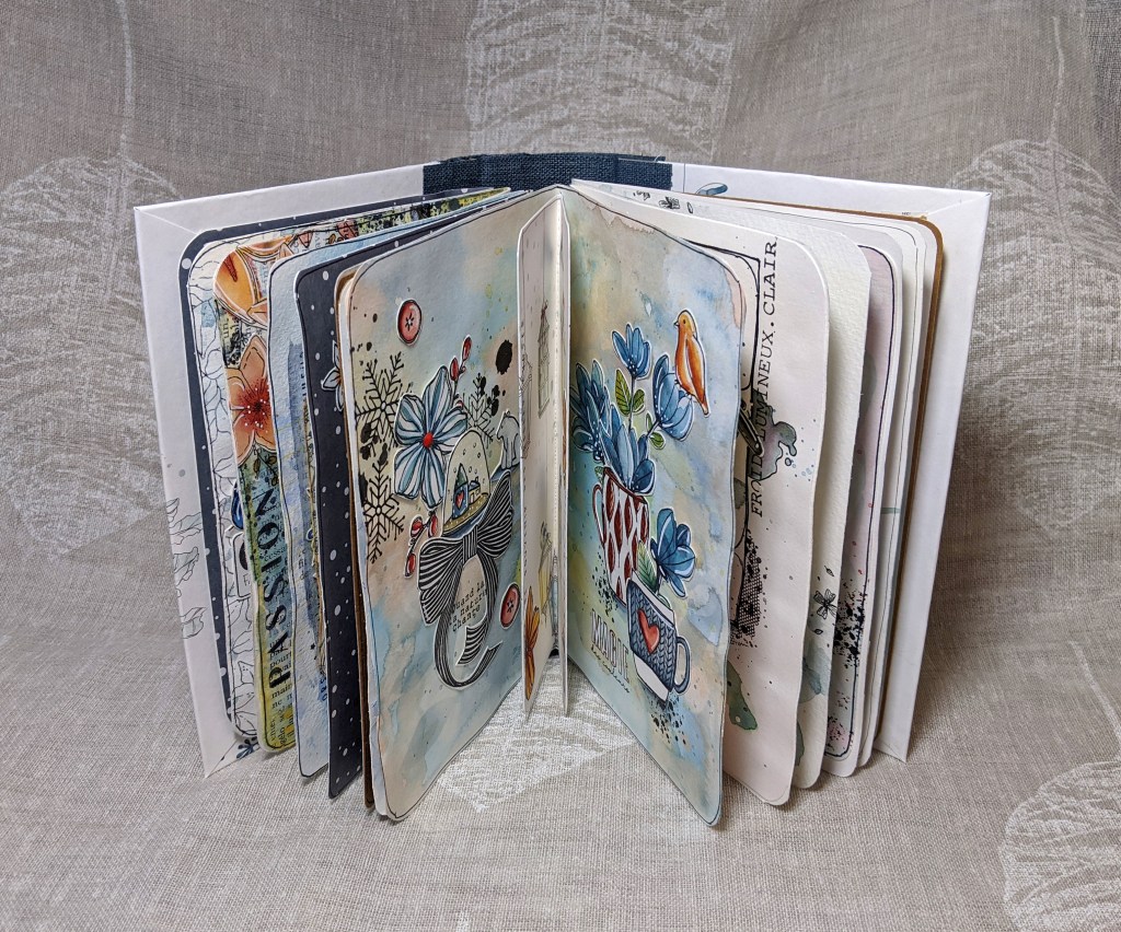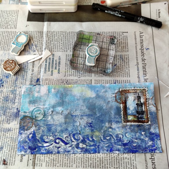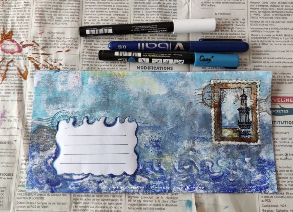 J’aime bien alterner les supports, alors j’avoue m’être bien amusée ici, à recycler de vieilles enveloppes … J’en ai toujours un plein stock ! C’est un support que j’aime bien, basique et sans valeur à la base, mais mais qui acquiert ses lettres de noblesse une fois décoré. Et il peut être envoyé par la poste, échangé, facilement intégré à un Art journal ou des Junk journaux si vous aimez… On peut aussi bien sûr les collectionner, c’est d’ailleurs ce que je fais ! 😉