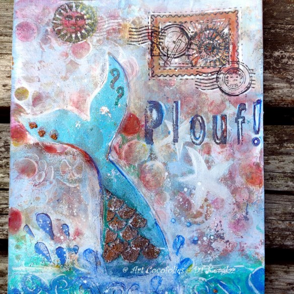ça ne se voit pas trop malheureusement en photo, mais j’ai joué aussi avec des peintures Izink Diamond pailletées, en doré, turquoise et vert. j’en ai mis sur mes arrêtes de queue de sirène et sur mon étoile de mer, j’aime beaucoup le rendu !!
