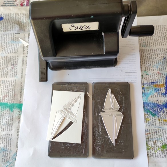 Pour mes découpes bateaux, je me suis servie de ma nouvelle Sidekick, j’en suis vraiment très contente !!! Elle est légère et pratique, et idéale pour découper la plupart des gabarits métal de Memorybox, qui ont pratiquement tous le format de ces deux beaux petits bateaux comme vous pouvez le voir sur la première photo.