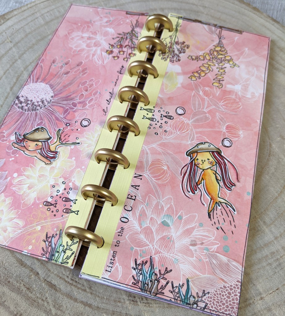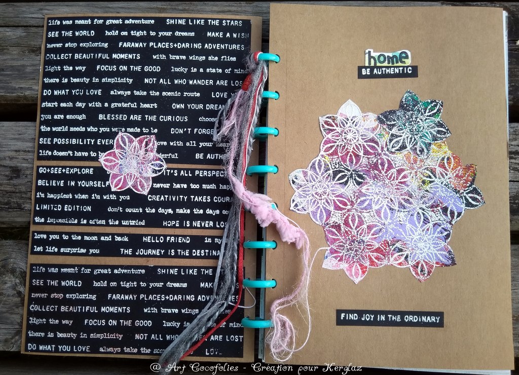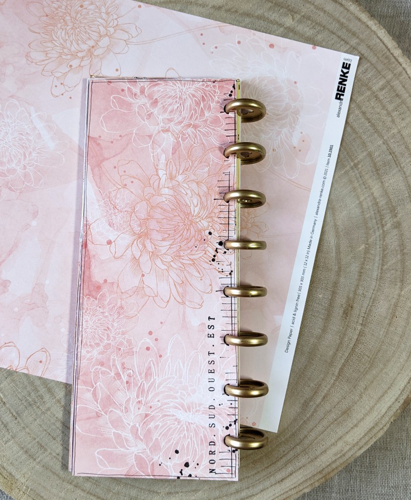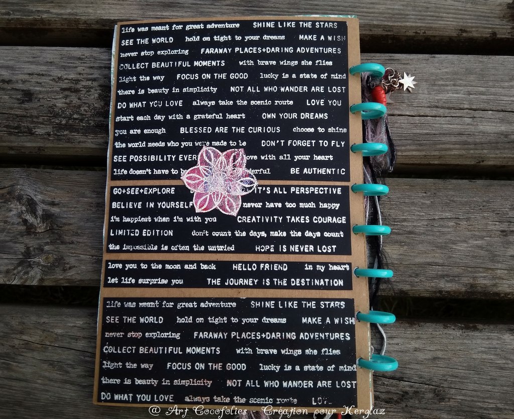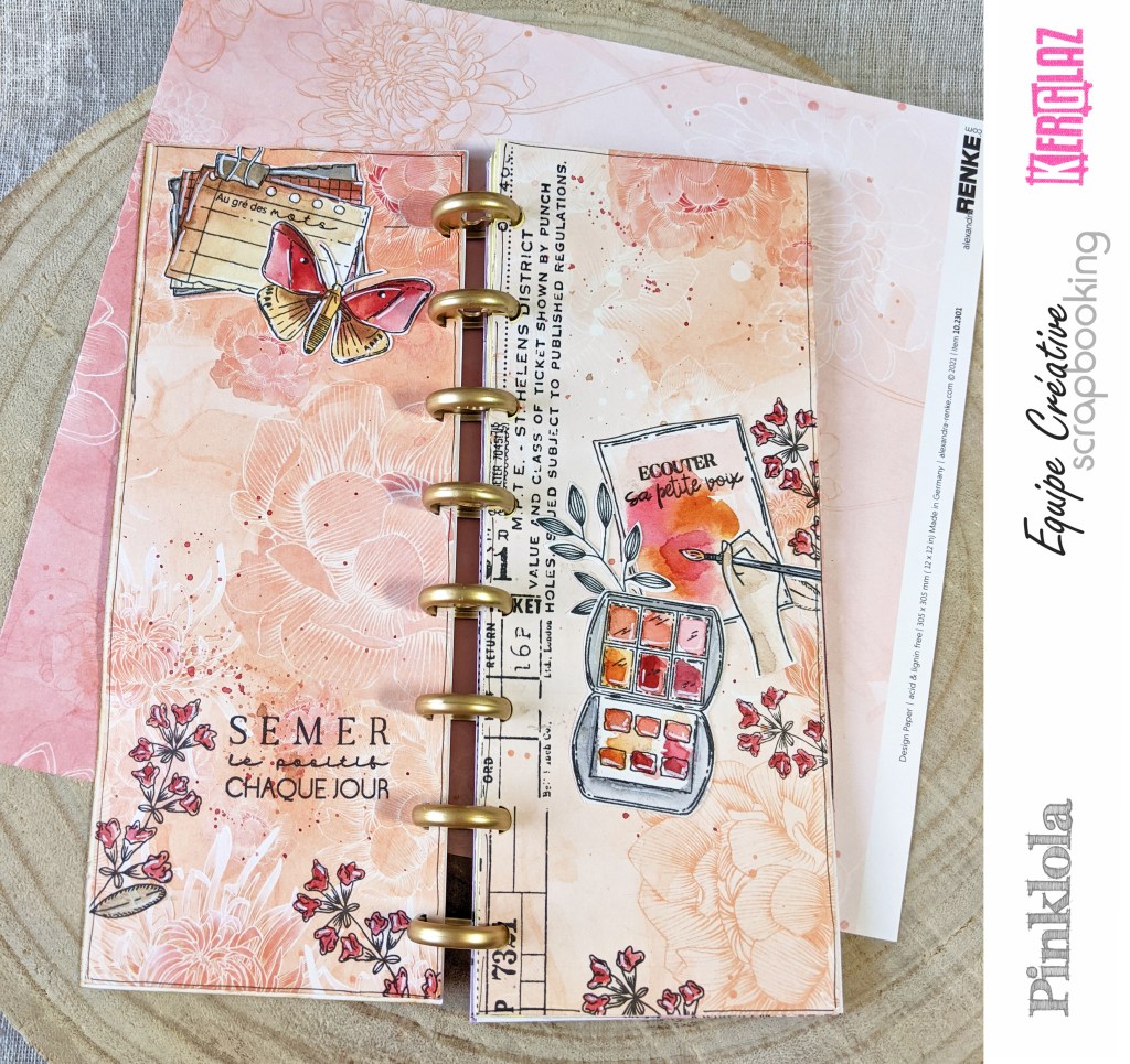 J’ai réuni toutes mes pages intérieures et mes deux couvertures en kraft épais par des disques. C’est tendance, et vraiment sympa car on peut ajouter ou retirer des pages assez facilement tout en ayant une bonne tenue globale. Je vous recommande ce système ! Il existe des disques de toutes les couleurs, et de deux ou trois tailles différentes, c’est joli visuellement en plus… Vous en trouverez toutes sortes dans la boutique, ainsi que différents systèmes de perforation selon votre budget, je vous remets les liens en fin de post.