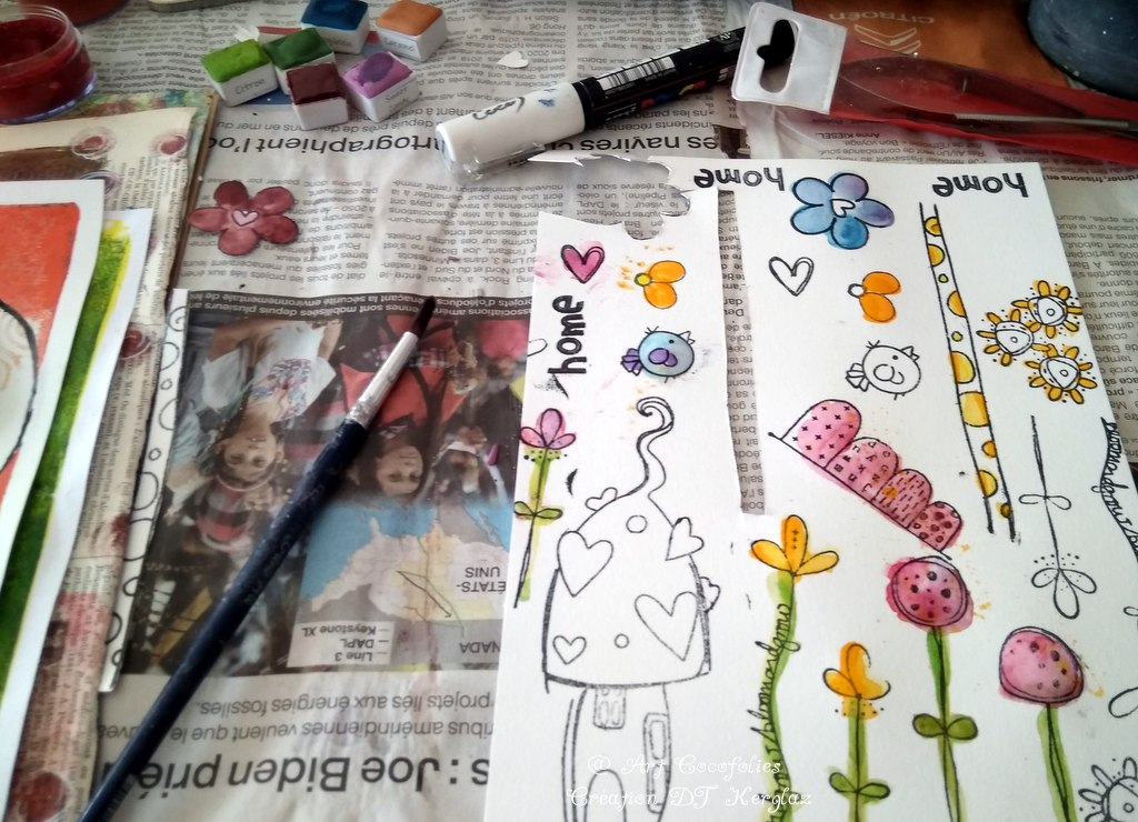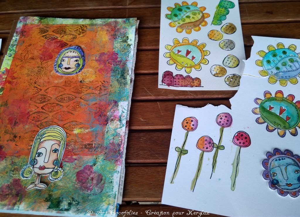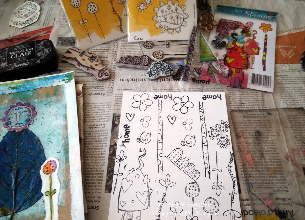 C’est un pur régal que de composer des petites scènes ou Art dolls, en mixant d’aussi jolis tampons de différentes marques !!
