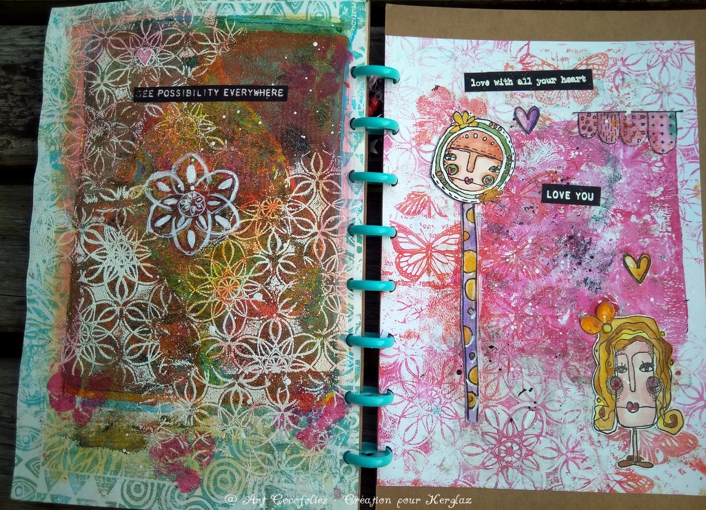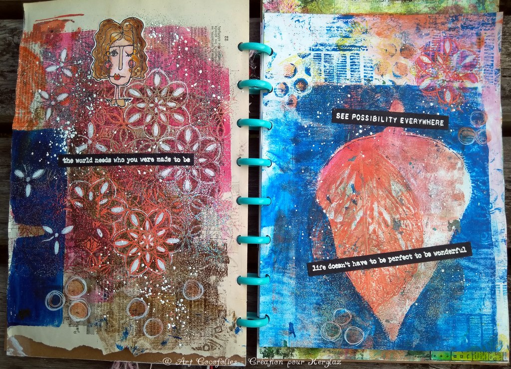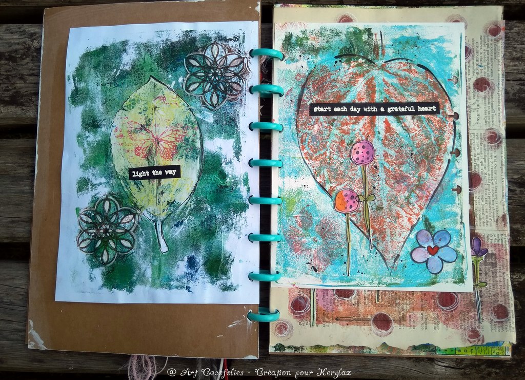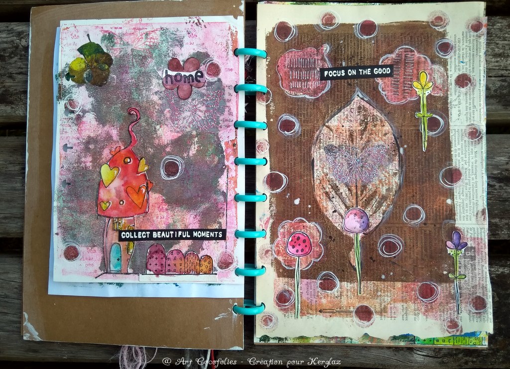 Je vous propose de découvrir à présent l’ensemble des pages intérieures de mon junk journal assemblé.