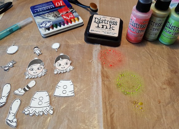Puis j’ai colorisé avec les mêmes encres et à l’aide d’un pinceau à réserve d’eau, mes deux personnages.